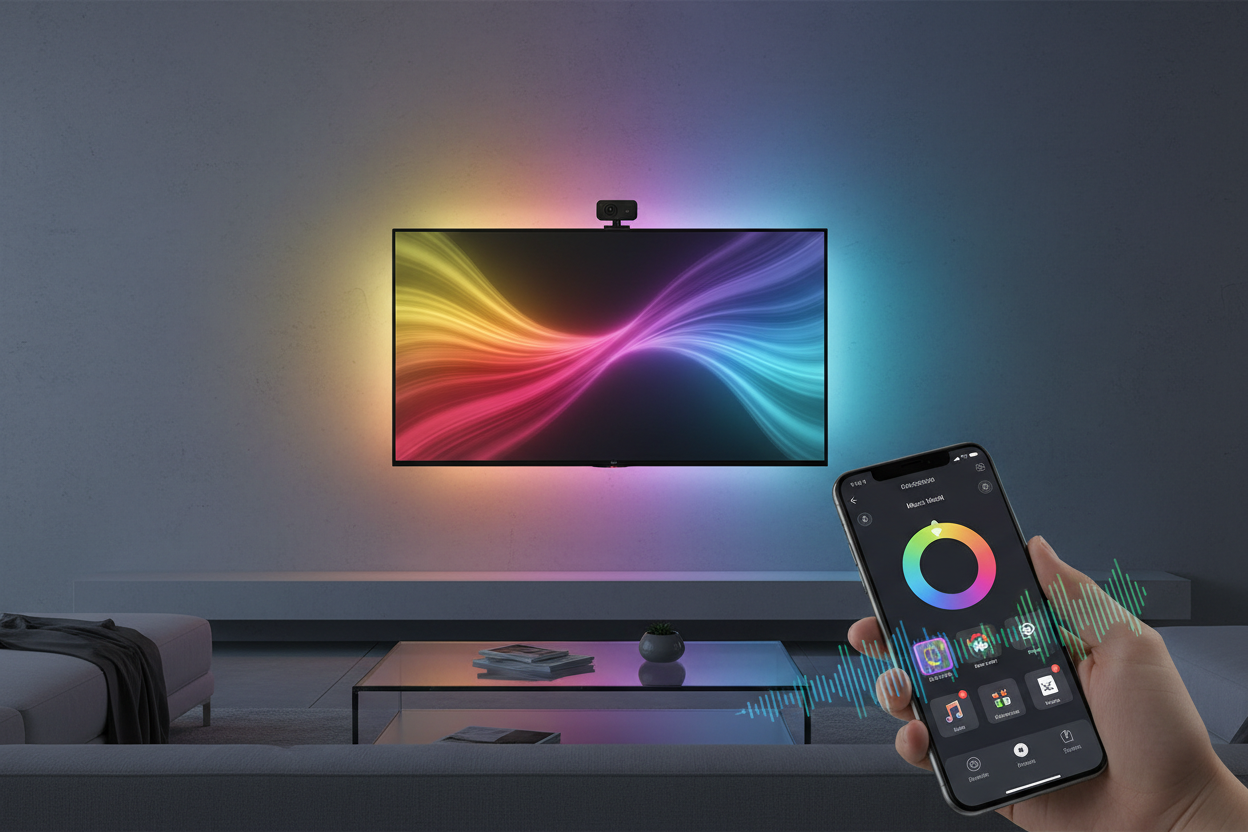 Smart RGBIC LED TV Backlight Strip with Camera, App Control, Music Sync, Smart Lights for Gaming Room Ambient Lighting Ideal for 55-65 inch Monitors